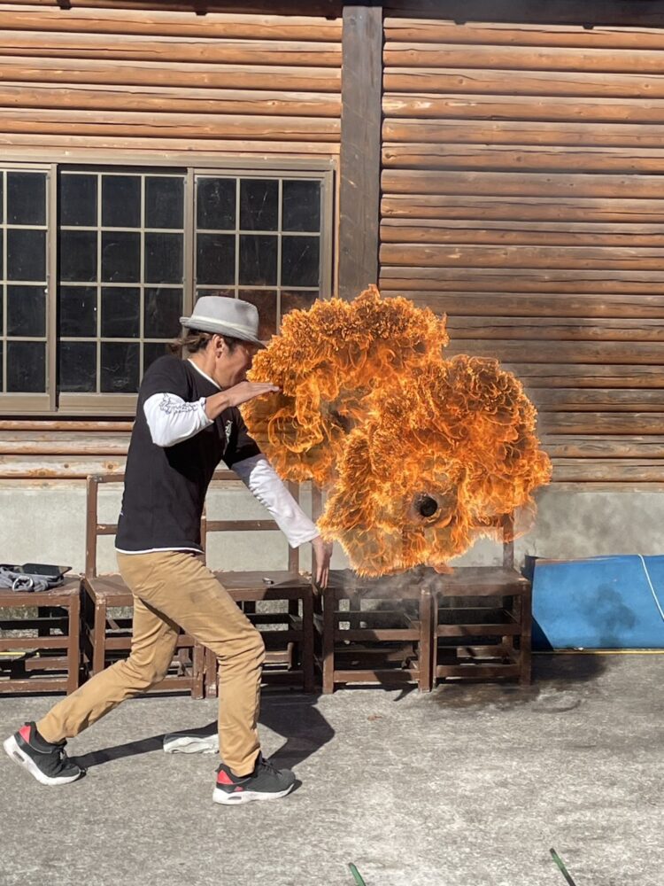 今回の学校公演にはなかった『ファイヤーショー』も、